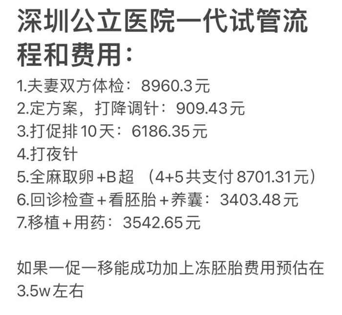 根据网友提供的数据,北大深圳医院试管婴儿成功率达到50%以上,具体一个试管周期的价格在35000元左右,使用进口药进行促排卵的话,最后费用还需往上调整。