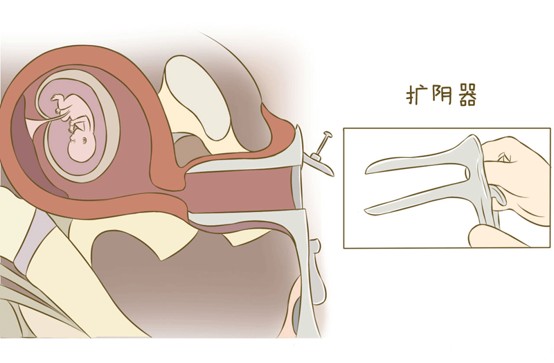 • 3探宫:用宫颈钳固定宫颈上唇。沿子宫体方向将探针送至子宫底部,了解子宫大小;
