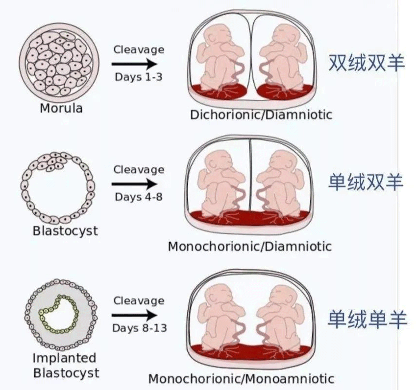 单卵双胎是指一个受精卵因为各种原因分裂成了两个胚胎,单卵双胎的孩子基因相同,所以相貌、血型、容貌都是相同的;