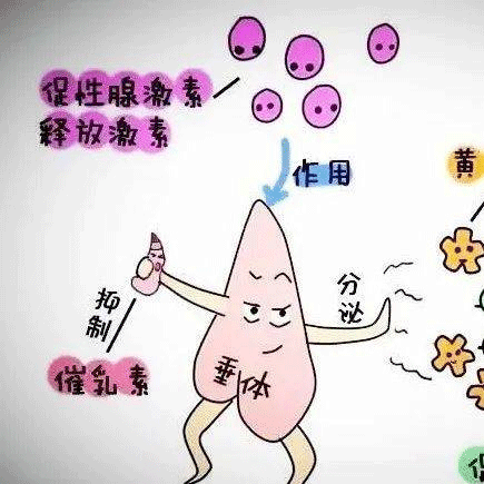 - 导致女性不孕:高催乳素作用于垂体,抑制FSH和LH的分泌。FSH少,不足以使卵泡成熟,LH少,不能出现LH高峰,故不排卵而致不孕。血催乳素浓度升高时,卵泡液中的催乳素水平也升高,雌激素水平降低,颗粒细胞明显减少,分泌孕酮降低,引起黄体功能不全而致不孕或孕早期流产。