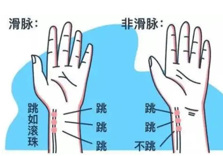 如果女性没有生病而出现滑脉,则可判断为妊娠(妊娠2~9月)。滑脉(喜脉)的出现一般在停经后40-50天左右就能摸出来,但根据个人体质不同,出现滑脉的时间也会不一样。