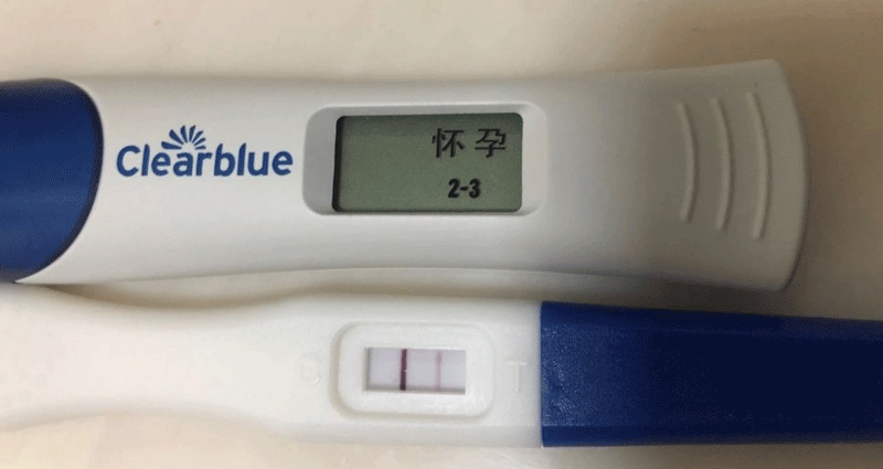 ③、验孕棒一深一浅,测试区T出现一条浅色线,对照线C颜色较深,此现象表示弱阳性,有怀孕的可能;