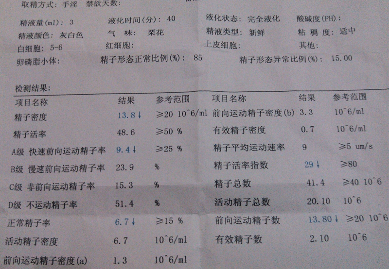 7、精子活力:40%以上(a+b+c)或32%以上(a+b),并且该精子存活率需要达到58%以上;