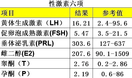 注:由于性激素六项可以诊断出多囊卵巢综合征,因此部分女性比较关注性激素六项怎么看出多囊,其实雌二醇无周期变化、睾酮偏高、孕酮偏高、促卵泡生成素偏低、黄体生成素偏高等都表示女性可疑有多囊卵巢综合征。