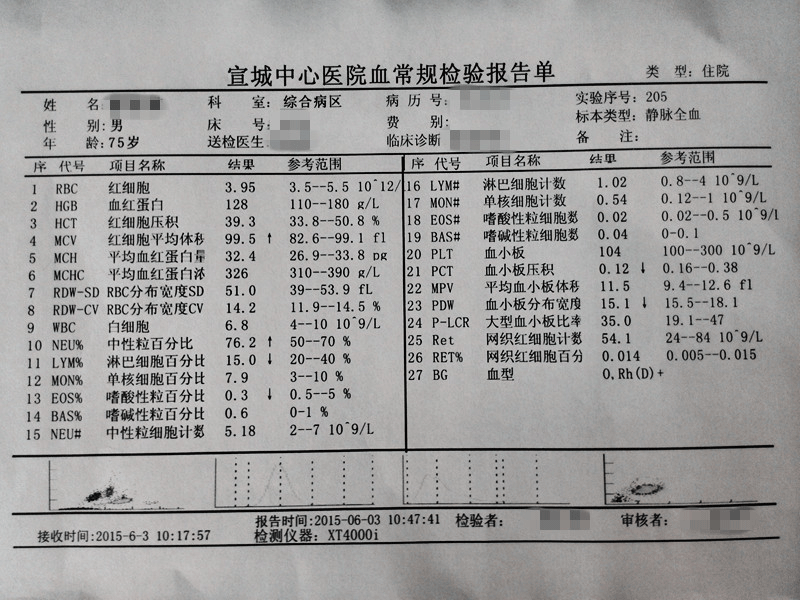 等待结果 | 等待血常规检查结果并领取报告单 |