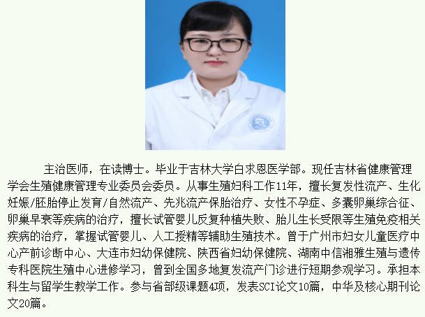 刘彦红,吉林大学第一医院生殖医学中心主治医师,硕士,毕业于吉林大学。于生殖妇科工作11年。