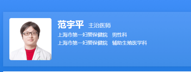 范宇平,上海市第一妇婴保健院,男性科、辅助生殖医学科主治医师,硕士研究生,原上海交通大学医学院附属仁济医院、男科学研究所医师。