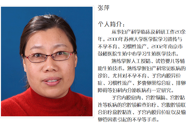 张萍,泰州市人民医院生殖医学科主任医师,从事妇产科学临床及科研工作20余年。2000年苏州大学医学院学习遗传与不孕不育、习惯性流产,2002年南京市鼓楼医院生殖中心学习生殖医学技术。