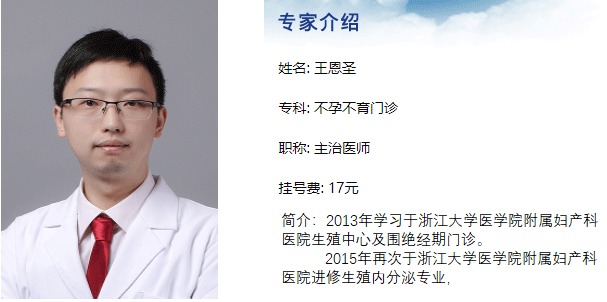 王恩圣,宁波市第一医院生殖中心主治医师,硕士研究生,中国宫产党员。2014年毕业于浙江大学医学院,专业方向辅助生殖技术。2013年学习于浙江大学医学院附属妇产科医院生殖中心及围绝经期门诊。