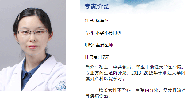 徐海燕,宁波市第一医院生殖中心主治医师,硕士,中共党员。