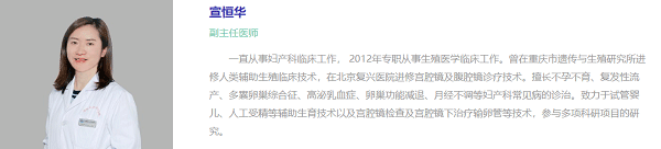 宣恒华,安徽省妇幼保健院生殖中心副主任医师,一直从事妇产科临床工作,2012年专职从事生殖医学临床工作。