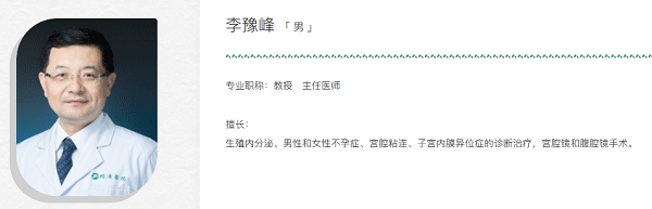 李豫峰,华中科技大学同济医学院附属同济医院生殖医学中心主任医师,教授,博士生导师,中华医学会妇产科学会会员。1986年毕业于湖北医学院(本科),1994年毕业于同济医学院(硕士),2006年获华中科技大学附属同济医学院博士学位,从医32年。