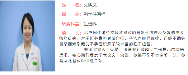 文晓凤,湖北省妇幼生殖中心副主任医师,生殖医学硕士。第一届湖北省免疫学会生殖免疫专业委员会委员,湖北省首届辅助生殖专家库成员,中国妇幼保健协会生育力保存专业委员会青年委员。