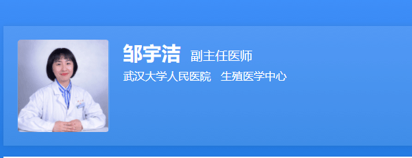 邹宇洁,武汉大学人民医院生殖医学中心副主任医师,医学博士,美国耶鲁大学访问学者。
