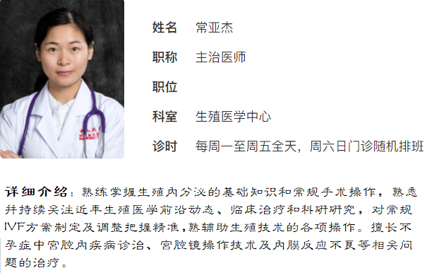 常亚杰,中山大学附属第六医院生殖医学中心主治医师,医学硕士,主治医师。2009-2012年度于中山大学附属第一医院生殖医学中心接受妇产科临床工作系统培训后进入中山大学附属第六医院生殖中心工作。