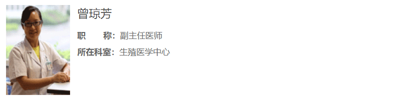曾琼芳,中国人民解放军联勤保障部队第九二四医院生殖医学中心副主任医师。