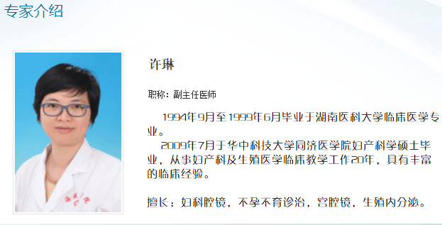 她在1994年9月至1999年6月毕业于湖南医科大学临床医学专业,2009年7月于华中科技大学同济医学院妇产科学硕士毕业,从事妇产科及生殖医学临床教学工作20年,具有丰富的临床经验。