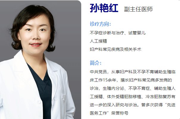 孙艳红,成都西囡医院副主任医师,中共党员,从事妇产科及不孕不育辅助生殖临床工作15余年,主要诊疗方向是不孕症诊断与治疗、试管婴儿,人工授精,妇产科常见疾病及相关手术。