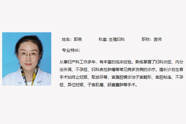 郭燕,云南省第一人民医院生殖妇科住院医师,硕士研究生。云南省女医师协会计划生育分会委员。从事妇产科工作多年,有丰富的临床经验。